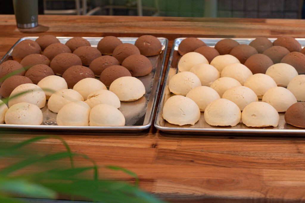 El pan en Casa Benell no es un detalle extra: es el alma del lugar. Conchas, bisquets, roles y brownies hechos en casa, disponibles también en su expendio junto a café y productos de marca propia como tazas o totebags que dan ganas de llevarse.