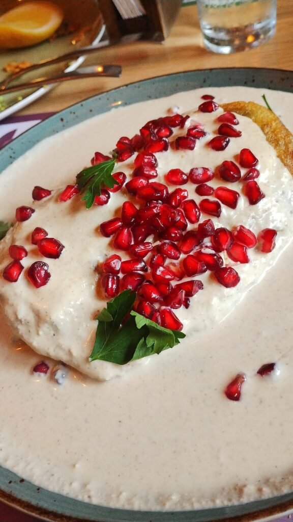 - Cubiertas con salsa de nogada y decoradas con granada y perejil.