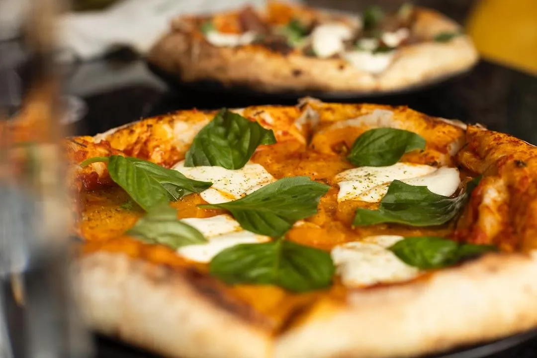 • Pizza Fiamma: cocinada en horno de leña, con masa de fermentación lenta, prosciutto, arúgula y mozzarella fresca.