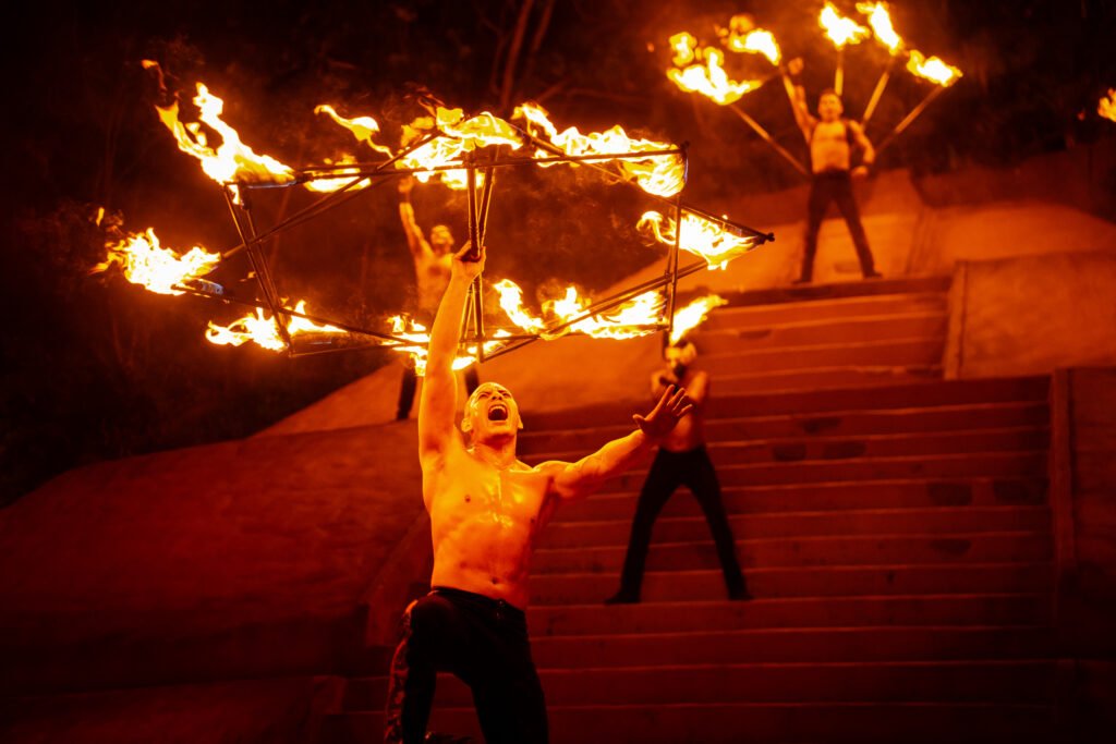 Acróbatas, danza, música y mito se entrelazan en una narrativa inspirada en los espíritus de la selva y los reinos sagrados, cerrando una experiencia donde gastronomía, arte y naturaleza conviven sin estridencias.