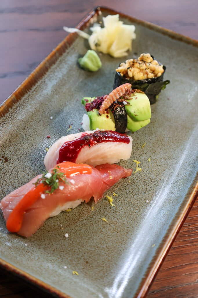 • Los nigiris con achiote o chapulines son provocadores y memorables.