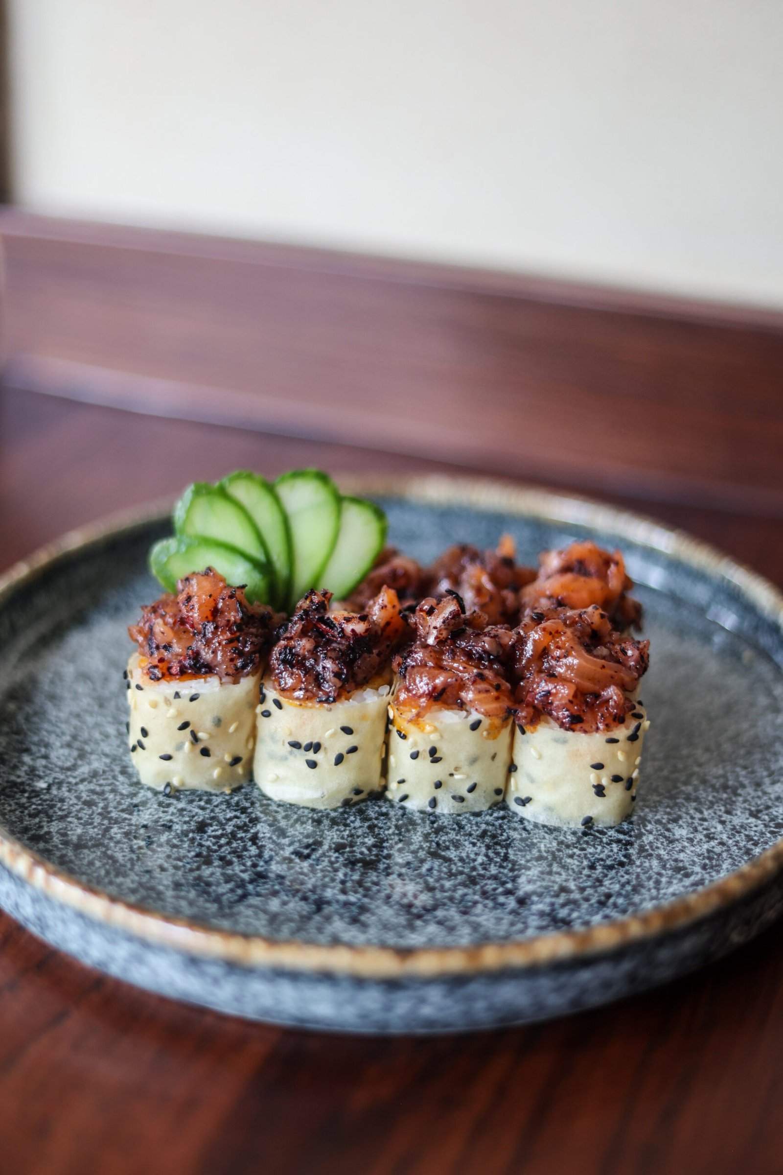 • En los makis, el Akai Hana —con camarón tempura, aguacate, tartar de salmón en miso y un toque de jamaica— es perfecto para compartir.