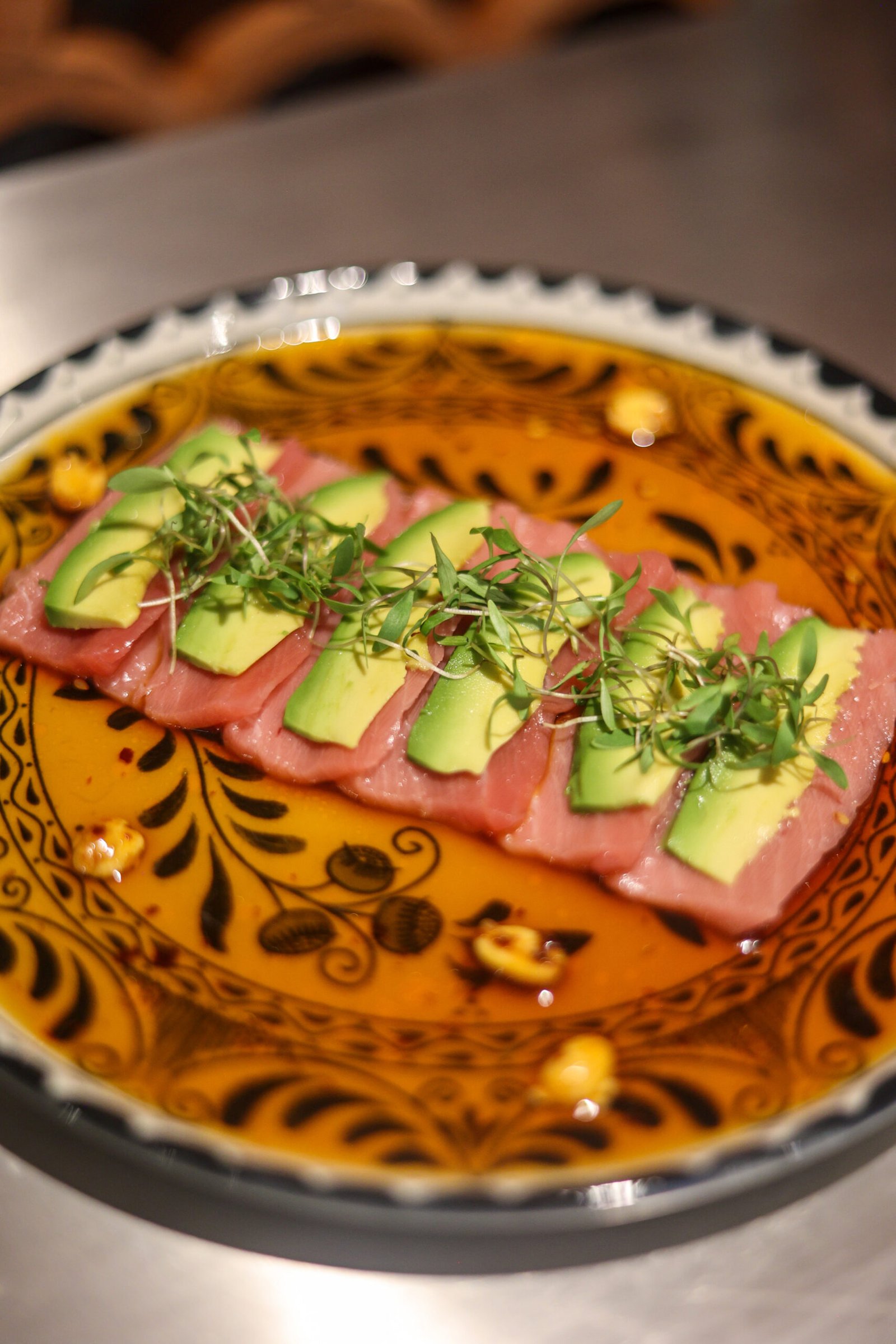 • El tiradito Sambal de kampachi fresco brilla por su frescura, mientras que el chu-toro con mole poblano y ajonjolí es un choque armónico de dos mundos que parecen destinados a encontrarse.